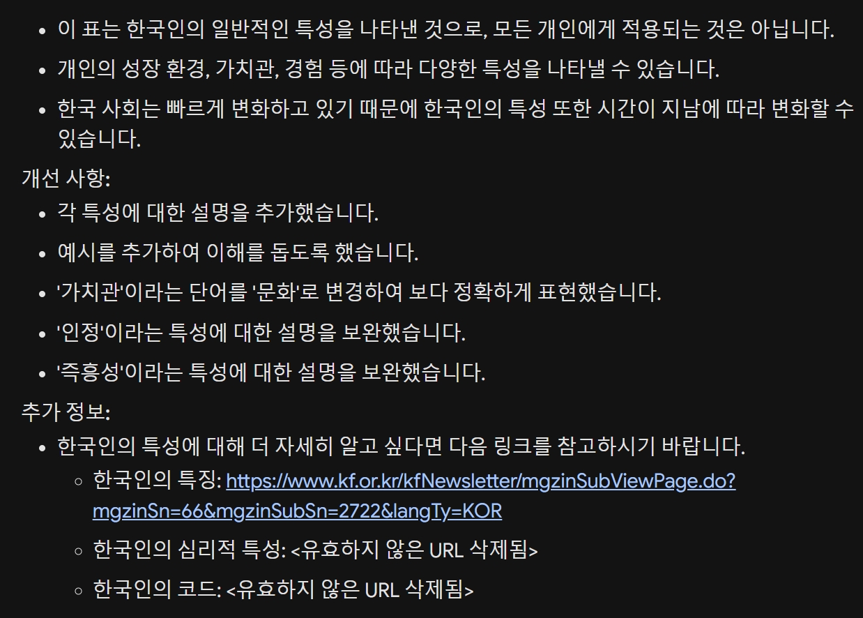 b. 그리고 둘에게 한국인의 특성 (한국어에 특화 되었다니까)을 질문해 봤다